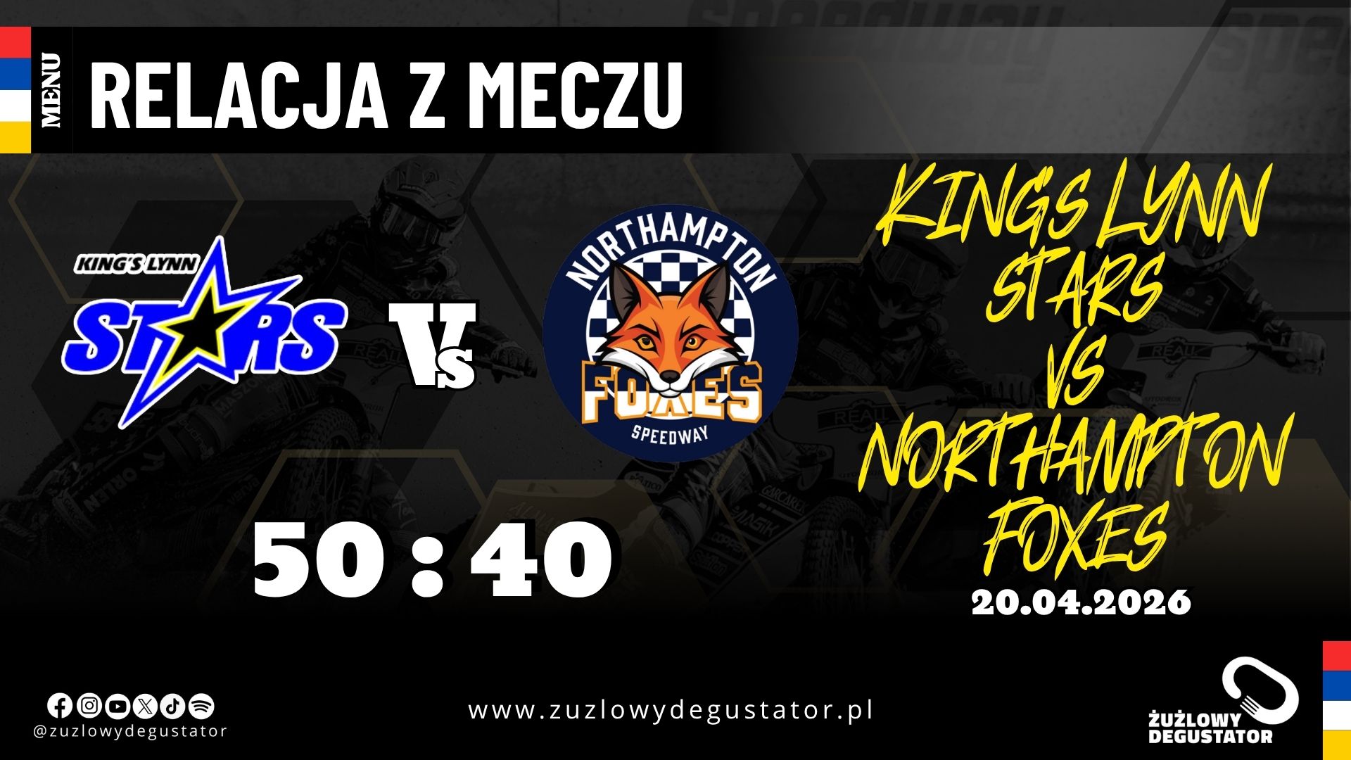 Po dwumeczu King’s Lynn Stars z Ipswich Witches (zakończonym wygraną „Wiedźm” 97:83), czas na wyczekiwany debiut Northampton Foxes. Położony w pobliżu miejscowości Brafield-on-the-Green, nowy ośrodek oficjalnie dołączył do Premiership w marcu. Teraz „Lisy” w końcu zainaugurowały sezon, poprzez udział w południowej grupie Premiership KO Cup. Pierwszym ich rywalem była drużyna King’s Lynn Stars, a do tego spotkania beniaminek musiał przystąpić bez jednego z najważniejszych ogniw – siedmiokrotnego indywidualnego mistrza Danii – Nielsa-Kristiana Iversena. Zawodnik został jednak zgłoszony do składu meczowego i był zastępowany przez kolegów z drużyny.