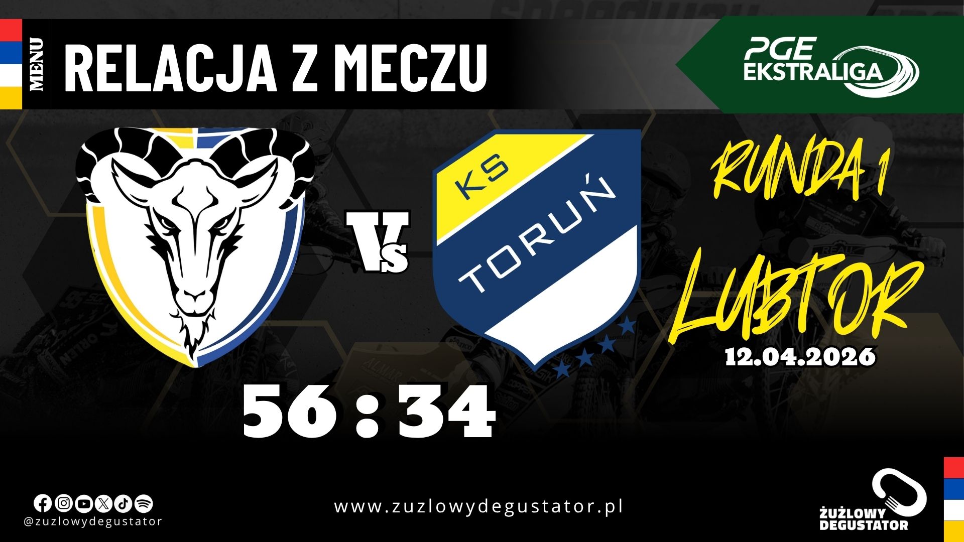 Hit pierwszej kolejki sezonu 2026 PGE Ekstraligi. Rewanż za ubiegłoroczny finał, w wyniku którego PRES Grupa Deweloperska Toruń zdetronizowała Orlen Oil Motor Lublin. Gospodarze jak zawsze postawili niezwykle trudne warunki.