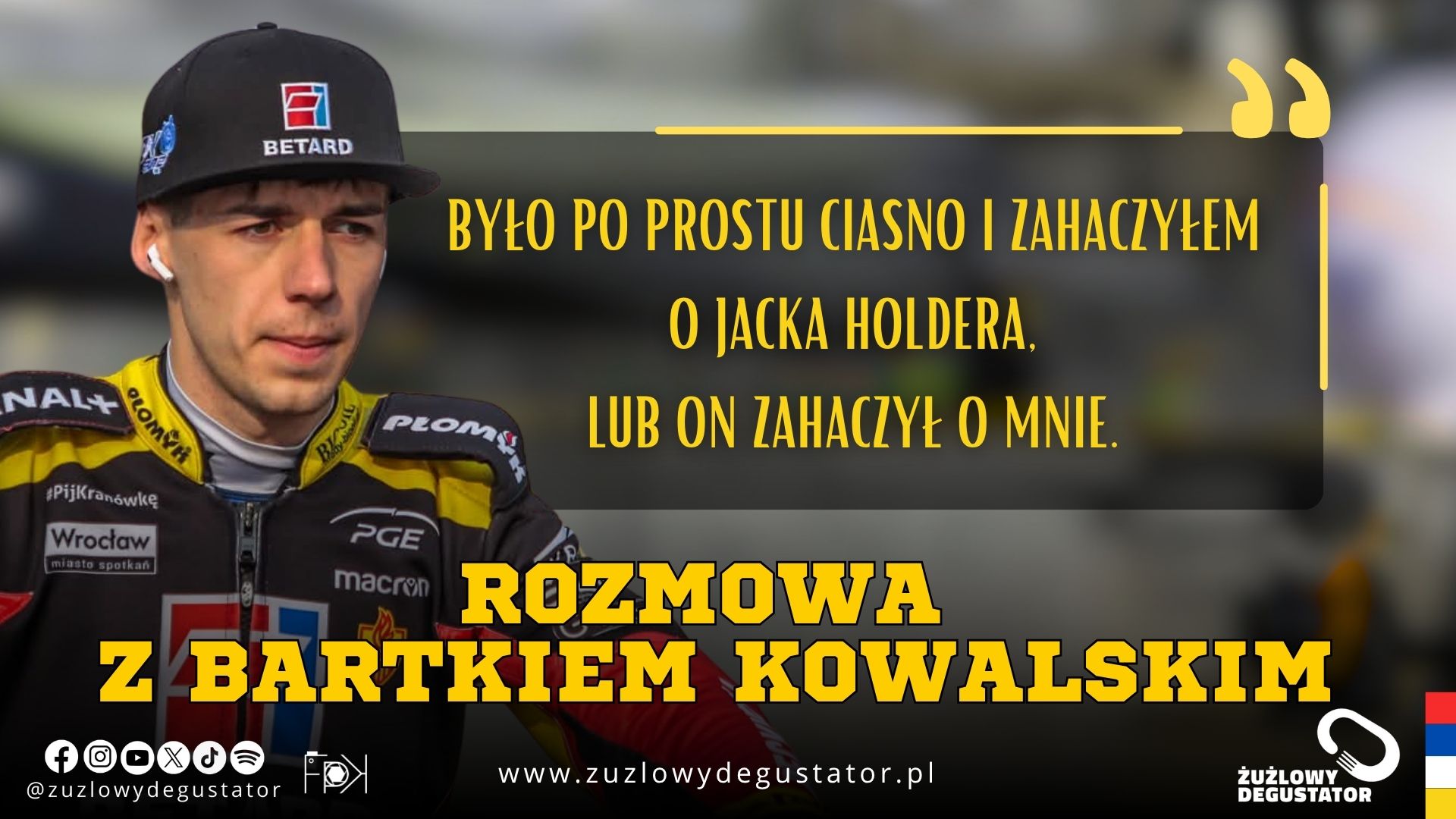 W pierwszym biegu starszy z braci Kowalskich upadł po starciu z Jackiem Holderem. Zapytaliśmy jak ten wypadek wyglądał z jego perspektywy, jak do niego doszło i jak on się czuje. – Po upadku nic poważnego mi się nie stało. Było po prostu ciasno i zahaczyłem o Jacka Holdera, lub on zahaczył o mnie i po prostu musiałem zrobić tam uślizg, bo nie byłem w stanie utrzymać się na motocyklu. Powtórzyliśmy w czwórkę i w sumie dobrze wyszło – krótko uspokoił fanów zawodnik U24 Sparty Wrocław.