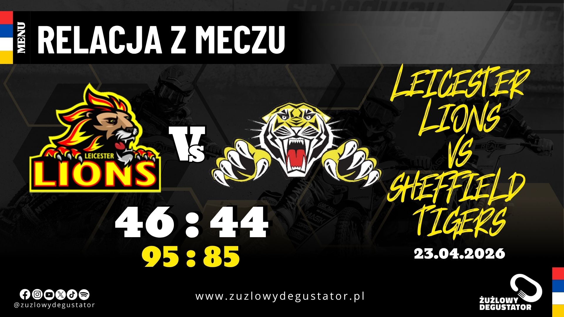 Na Hydroscand Arena odbył się ostatni mecz północnej grupy Premiership KO Cup. Miejscowe „Lwy” zmierzyły się w rewanżu z Sheffield Tigers. Pierwszy mecz na Owlerton Stadium padł łupem Lions 49:41. Pomimo komfortowej sytuacji w jakiej byli przed meczem gospodarze, ich szef Steward Dickson podkreślał, że finał blisko, ale to jeszcze nie koniec walki. Simon Stead, menedżer Tigers, podkreślał za to, że rezultat sprzed tygodnia to wielkie rozczarowanie, ale podchodzą do tego meczu z podciągniętymi rękawami i gotowi do walki.