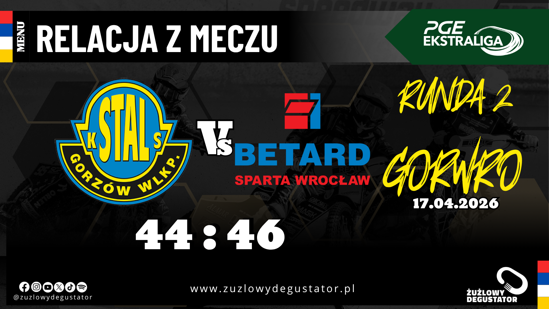 Wieczorową porą w piątek 17. kwietnia na stadionie im. Edwarda Jancarza w Gorzowie doszło do pojedynku pomiędzy osłabioną Stalą Gorzów, a rozpędzoną po wysokim zwycięstwie nad Falubazem Zielona Góra w 1. kolejce PGE Ekstraligii Spartą Wrocław. Zapraszamy na relację ze spotkania.